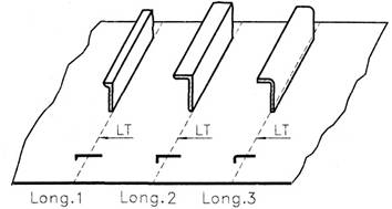 In aceasta etapa, elementele de osatura simpla sunt centrate, tinandu-se cont de pozitia liniilor teoretice trasate pe panou. Se va avea in vedere dispunerea corecta a grosimii inimii si orientarea corecta a aripii sau bulbului profilului fata de liniile teoretice, in conformitate cu documentatia de trasaj. In fig. 5 este prezentat modul de dispunere a osaturii din profile laminate, respectiv flansate, in concordanta cu regulile privind liniile teoretice. Nerespectarea acestor reguli poate conduce la dificultati majore sau chiar la imposibilitatea asamblarii corpului navei.