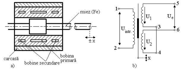 Semnificatia notatiilor este: M - miez feromagnetic ; B - bobina de lungime l x - marimea de masurat (deplasarea).