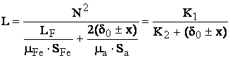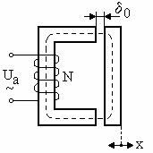 Pe miezul feromagnetic (realizat din tole) se afla plasata o bobina alimentata cu o tensiune alternativa, Ua. Modificānd īntrefierul δ, prin deplasarea x (a armaturii mobile) se va modifica reluctanta circuitului magnetic si implicit inductanta L (a bobinei), conform relatiei: