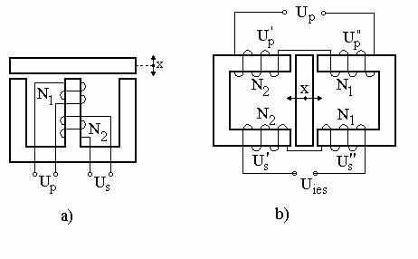 Fig. 4.9- Elemente sensibile de tip transformator cu modificarea īntrefierului: