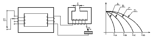 Modificarea pozitiei tronsonului miezului de fier (fig. 1.31) în sensul modificarii întrefierului d are ca efect variatia reactantei bobinei auxiliare înseriate în secundarul transformatorului ducând la modificarea curentului I2 dupa preferinta.