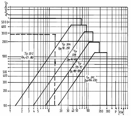 Modulul - m. Este dat în functie de tipul curelei tab. 11.9.