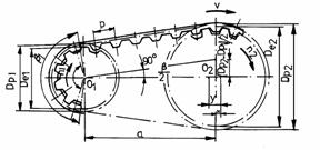 În figura 11.13 este prezentata geometria rotilor pentru curele dintate.