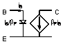 Modelul de ordin unu al unui tranzistor bipolar care opereaza īn regim cvasistatic de semnal mare īn regiunea activa normala este reprezentat de: |