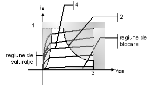 Pentru tranzistorul bipolar trebuie specificat ca marimile cele mai importante care limiteaza functionarea tranzistorului sunt definite īn planul caracteristicilor de iesire pentru conexiunea emitor comun. Figura 3.9 le pune īn evidenta. Cu 4 s-a notat: |