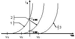 Figura 11 prezinta o comparatie intre caracteristicile de transfer ale diverselor tipuri de tranzistoare cu efect de camp cu canal n. Cu 1. este notata caracteristica de transfer pentru: |