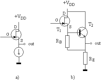 JFET (construite pe acelasi cip de siliciu), ca an Fig. 4.11 a). Circuitul are