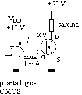 conectata poarta unui alt circuit cu tranzistoare FET, curentul prin comutator