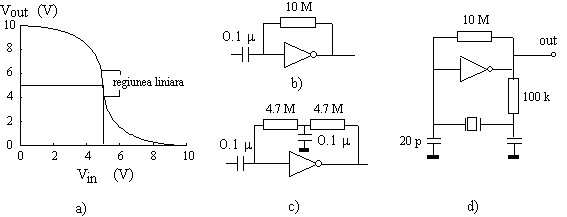 tipica este oscilatorul cu cristal de cuart, prezentat an desenul d) al aceleiasi