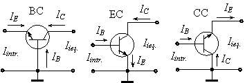 Īn fig.1.3. sunt prezentate aceste trei modificari de cuplare a tranzistorului bipolar īn circuitul electric.