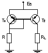This problem treats the problem of the operating modes. For the circuit presented in figure 16, determine the operating mode for the transistors. Assume that the resistors have usual values. |