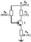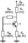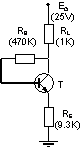 This problem treats the problem of the operating modes. For the circuit presented in figure 12, determine the operating mode for the transistor. Assume that the resistor has usual values. |