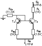 This problem treats the problem of the operating modes. For the circuit presented in figure 15, determine the operating mode for the transistors. Assume that the resistors have usual values. |