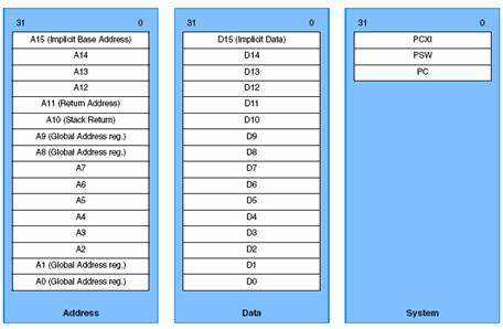 PCXI, PSW, si PC-ul sunt Nucleele Functiilor Speciale ale Registrelor(CSFRs - Core Special Function Registers). registrele PCXI si PSW contin indicatori, executiile anterioare si informatiile de protectie