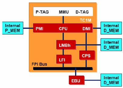 Unitate puternica pt manipularea bitilorTriCore este sprijinit de biblioteca de module periferice Infineon, cum ar fi DMA si Debug in timp ce memoria de tip SRAM, DRAM, ROM, FLASH sau OTP si dimensiunea pe chip sunt configurabile.Nucleul si perifericele sunt conectate usor pentru a da un randament de inalta performanta si un cost efectiv al sistemulu, adaptate la aplicatii individuale.