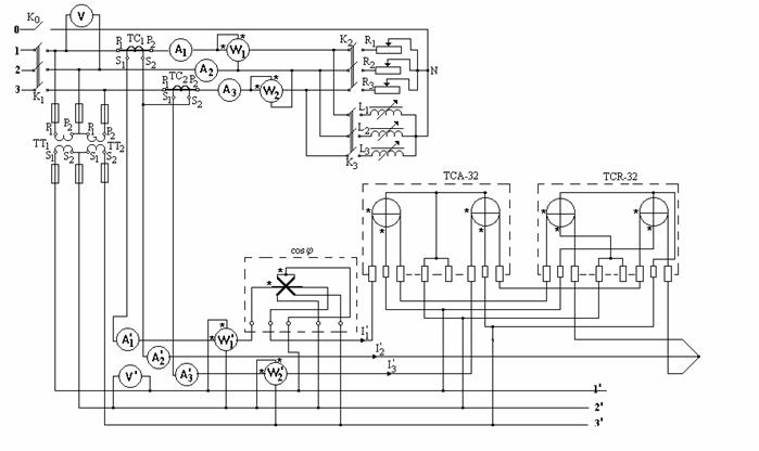 Fig. 16.1 Schema de montaj pentru masurarea puterilor si energiilor pe cale indirecta, īntr-o retea