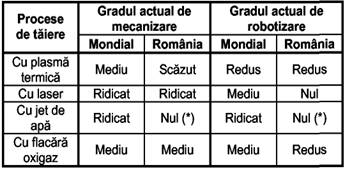 Tabelul 1. Aprecierile cu privire la gradul de robotizare al procesului de taiere