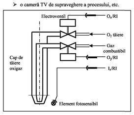 > o fotocelula care sesizeaza absenta radiatiei luminoase a flacarii; un traductor de ionizare al gazului fierbinte din apropierea jetului de taiere;