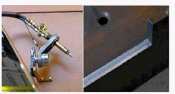 In fig.10a se prezinta in detaliu un cap de taiere oxigaz pentru sisteme robotizate, iar in fig.10b taietura tipica din punct de vedere al calitatii ce se poate obtine pe astfel de sisteme.