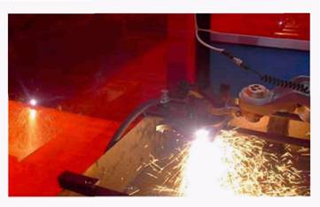 Figura 11. Aspect din timpul taierii robotizate cu plasma de aer