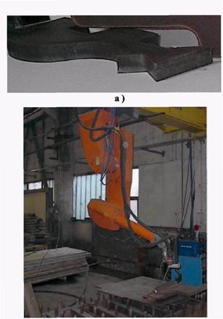 Figura 10. a) Cap de taiere oxigaz pentru sisteme robotizate b) taietura tipica pentru astfel de sisteme