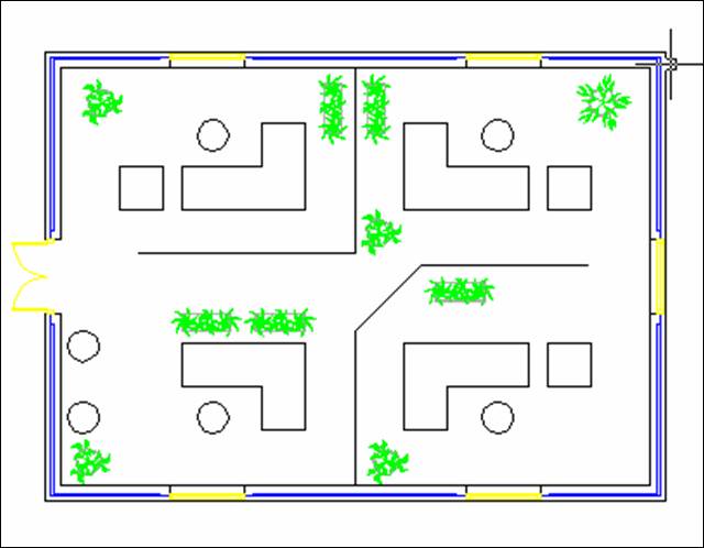 }n fereastra de dialog Layer Control poate fi observat un num[r de layere prezentate deja ]n desen, care nu au fost create de Dvs. Aceasta se refer[ la leyer-ele desenului de referin[, Office , care a fost ata=at. }n ordinea ]n care ele sunt trecute ]n desenul de referin\[, AutoCAD-ul nume=te leyer-ele de referin\[ cu numele fi=ierului original urmat de simbolul "pipe" (I) =i apoi de numele layer-ului (exemplu este layer-ul OFFICE WINDOW)