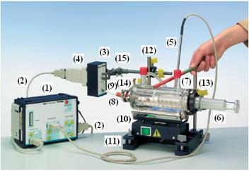 seringa cu gaz (6); cilindru de sticla (7); bara magnetica de omogenizare; magnet; pālnie; tub de cauciuc (8);