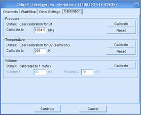 Īn fereastra deschisa (Cobra 3 - Ideal gaz law) se fac setarile necesare īn: Channels; Start / Stop (Get value