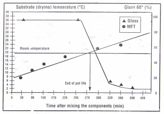 Aceasta problema constituie grija principala atat a producatorului de vopsea cat si a utilizatorului de vopsea, intrucat efectul nu poate fi depasit prin accelerarea reactiei, iar tratarea nu poate incepe din nou chiar daca temperatura creste.