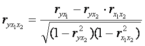 Cel mai adesea, coeficientii de corelatie partiala se determina pe baza coeficientilor de corelatie liniara simpla. Pentru exemplificare, vom lua cazul corelatiei multiple cu doua variabile factoriale (corelatia partiala de ordinul întai), astfel:
