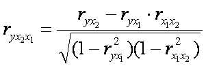 - coeficientul de corelatie partiala între Y si X2, excluzând influenta variabilei X1: