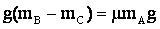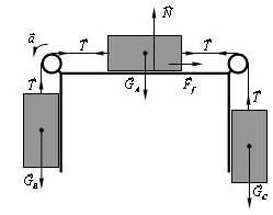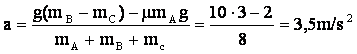 Se dau: m1=mA=1kg (pt A) m2=mB=5kg (pt B) m3=mC=2kg (pt C) μ=0,2 (între plan si corpul A) |