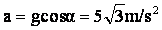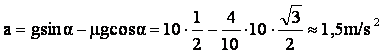 c) Considerând corpul ca fiind în partea de sus a planului înclinat, de unde îsi începe miscarea, cu v0=0m/s, determinam acceleratia: