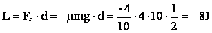 d) Lucrul mecanic efectuat de forta de frecare pe distanta d=0,2m: