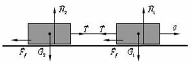 b) Scriem ecuatia fortelor pentru prima masina: m1a1=T+Ff , dar masinile se deplaseaza cu viteza constanta, deci a=0m/s2.