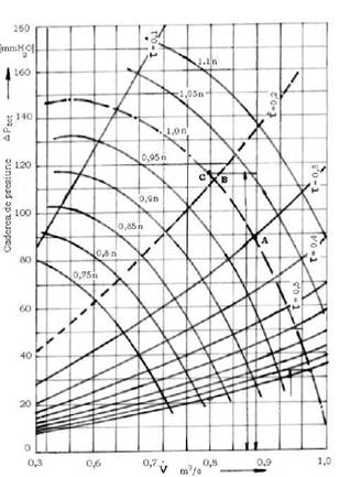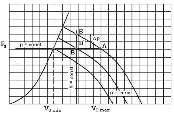 functionare B' când este V0 . In sistemul de laminare se produce o cadere de presiune, de la B' la B si în final turbomasina functioneaza cu presiunea p3.