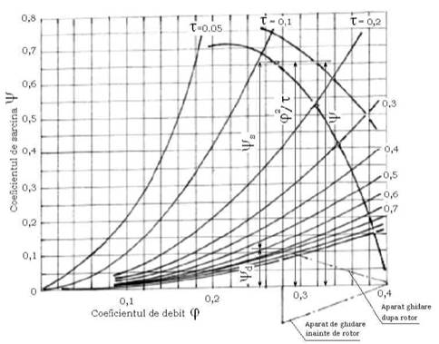 Fig. 6.3.a. Caracteristica unei turbomasini radiale cu reglare prin laminare