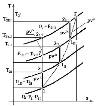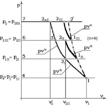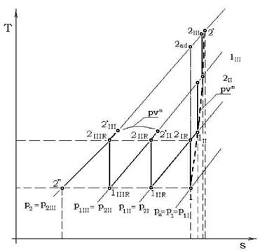 Lucrul mecanic de comprimare adiabat se determina cu expresia: