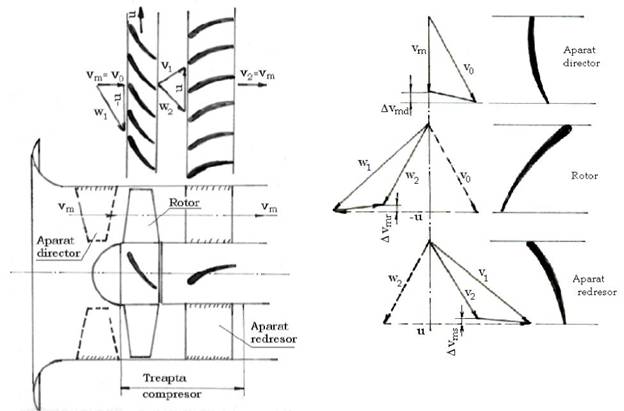 relative si a vitezei periferice a curentului de gas ce trece prin rotor, iar presiunea dinamica prin cresterea vitezei absolute în rotor. La iesirea din rotor se ataseaza difuzoare sau aparate directoare, care micsoreaza viteza gazului si prin aceasta transforma presiunea dinamica în presiune statica.