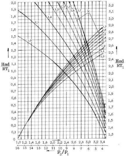Pe abscisa se trece debitul aspirat, iar în ordonata diferenta totala de presiune Aptot, raportul de comprimare p2 tot/p1 tot sau lucrul mecanic adiabatic Had (aici s-a