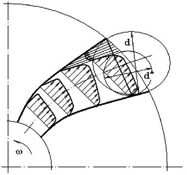 La turbomasinile centrifugale, transportul particulelor de gaz se face dupa directii variabile, fiind la intrare perelele cu axa rotorului, iar la iesire radiale, deci în rotor are loc o schimbare a directiilor cu 90°.