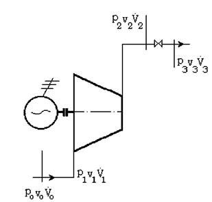 Fig. 6.1. Schema unei turbomasini cu m arimile de stare caracteristice 6.1.1.a. La presiune de refulare constanta