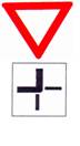 Cui trebuie sa acordati prioritate când întâlniti indicatorul "Cedeaza trecerea" sub care se afla instalat semnul aditional alaturat? a) vehiculelor care circula pe drumul prioritar, indicat pe semnul aditional; b) vehiculelor care circula din dreapta; c) tuturor vehiculelor. |