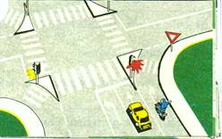 Care dintre cele doua autovehicule trebuie sa opreasca la culoarea rosie a semaforului? a) motocicleta; b) autoturismul; c) atât autoturismul, cât si motocicleta. |