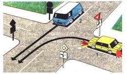 Care dintre cele doua autovehicule din imaginea alaturata se afla pe drumul prioritar? a) autoturismul; b) nici unul; c) autofurgoneta. |