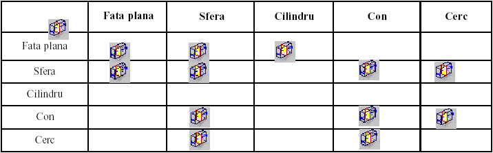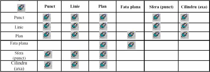 Tabel 2. Elementele admise pentru constrāngerea de coincidenta