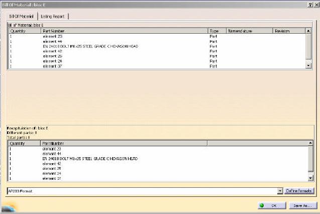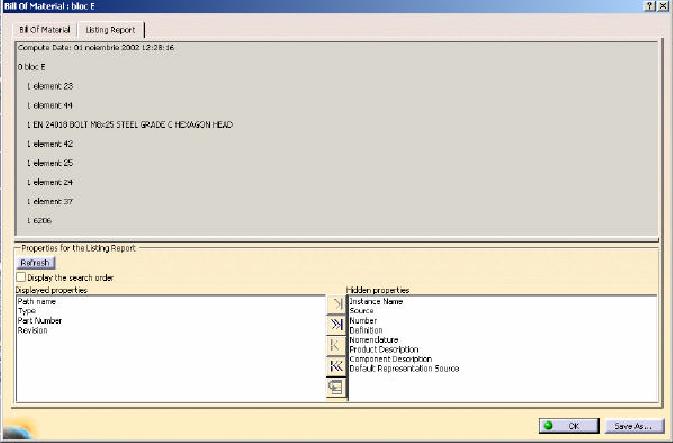 Fig.34 Lista de componente ale unui ansamblu, sectiunea Listing Report