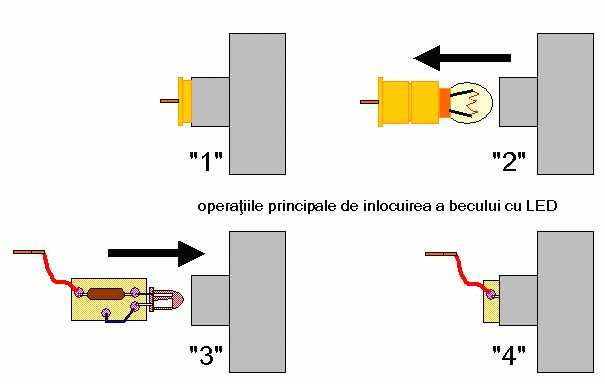 Fiind in "era tehnologiei" putem face un mic tunning la instalatia de bord, care consta in inlocuirea becurilor de bord (1,2W/12V) cu LED-uri (montate pe o bucata de cablaj de test, impreuna cu rezistenta de limitare a curentului, o bucata de fir si un papuc auto "tata", pentru a pastra modul de conectare original).