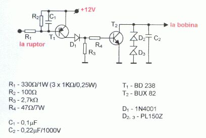 Pornind de la ideea lui Cristian, aceea de a construi o aprindere electronica pe baza tranzistorului specializat MJ10012, indicat si pentru aprinderea cu MC3334P.. am inceput studiul :))