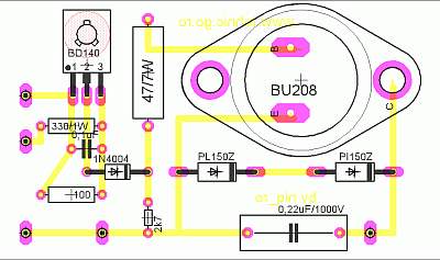 tranzistorul BU526 suporta tensiuni mari (400V) nu ar mai necesita cele diode